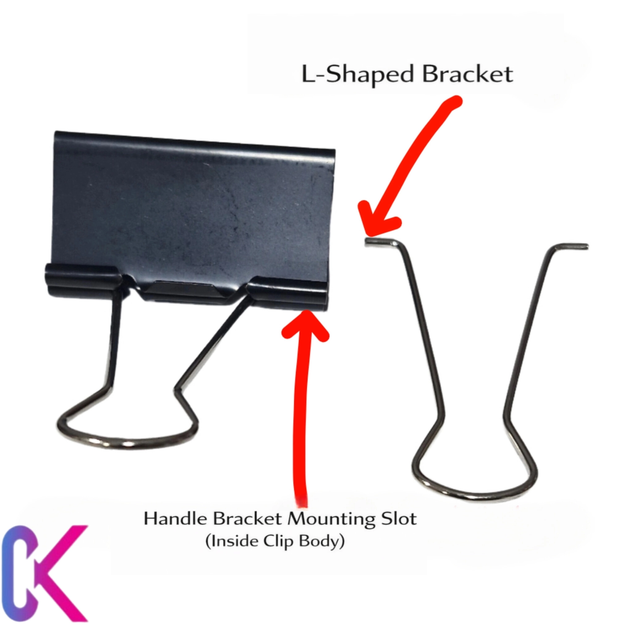 - براکت L‑شکل بازوی فلزی: انتهای بازوی فلزی که داخل بدنه قرار میگیرد و با ایجاد نیروی ارتجاعی، کاغذها را محکم نگه میدارد.
